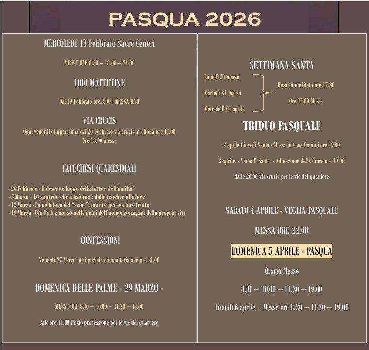 Domenica ore 8:30 - 10:00 - 11:30 - 18:00